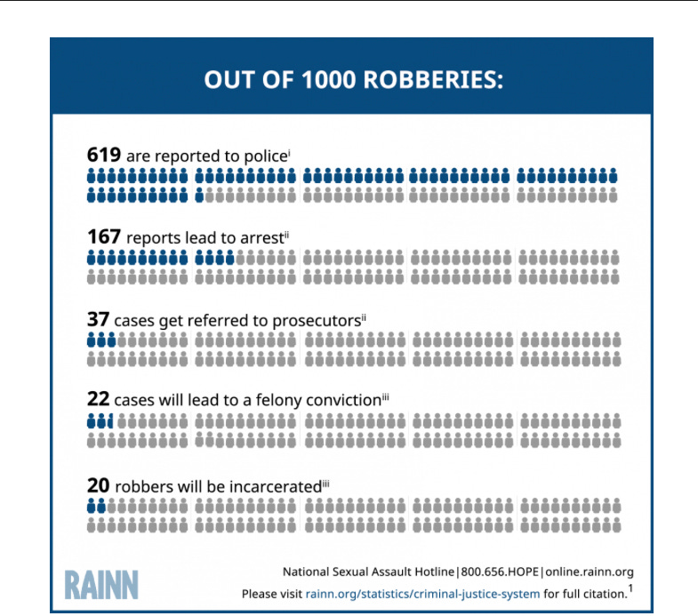 GRIM STATISTICS about rape, robberies, assaults and battery. It’s disgusting. But boy we are quick to INCARCERATE people for drugs, ESPECIALLY low income and working class people. Truly disgusting.